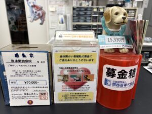 募金活動終了のご報告 お知らせ 2026.01.07 梅津動物病院です。 受付にて設置しておりました募金箱を回収し、皆様よりお預かりいたしました募金は、指定の団体様へ振込させていただきました。 前回回収より4年ほどの間に、たくさんの方から募金をお預かりいたしました。 ご報告と併せて、お礼申し上げます。 公益財団法人 関西盲導犬協会 ¥9003 NPO法人 日本レスキュー協会 ¥10291 一般社団法人 日本小動物獣医師会 身体障がい者補助犬募金 ¥1998
