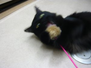 くまドンと(で)遊ぶ!! スタッフブログ 2017.05.22 病院猫のくまドンです☆(愛称は”くま”) 甘えん坊で猫ちゃんでは珍しいくらいの人懐っこさなのです!! ⁽少々おバカさんなのがたまらない😊) 今日は手術や検査がなかったので くまと(で) 遊びました♡♡ ブレブレの写真で激しさが伝わるでしょうか?? でも私がしつこかった様で飽きられてしまいました・・・ 無反応になると寂しいですよね・・・ ● 動物看護師 平瀬 ●