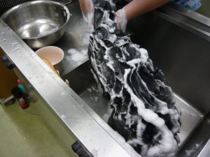 まずはお湯でしっかり濡らす~♫